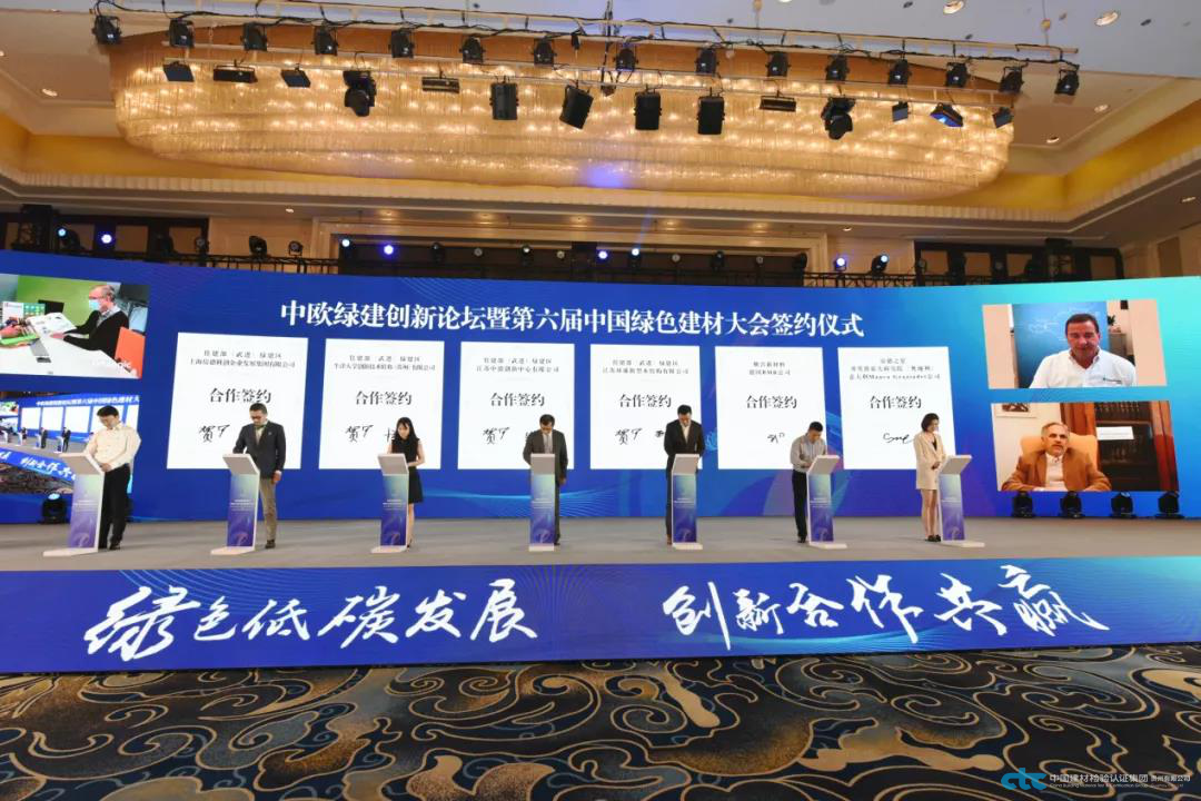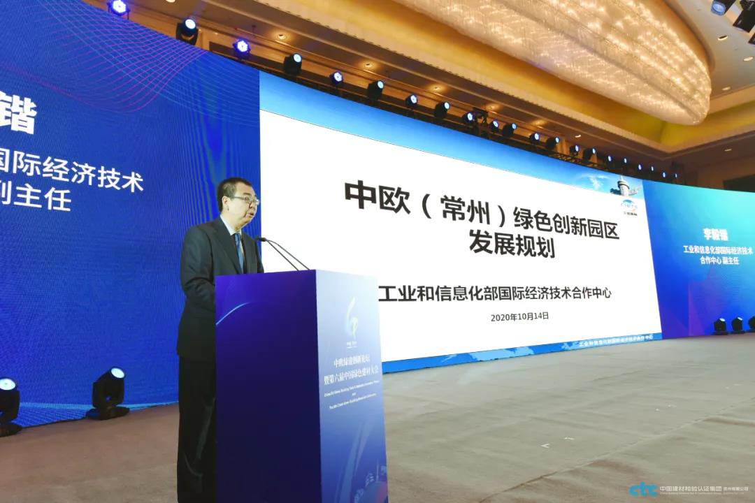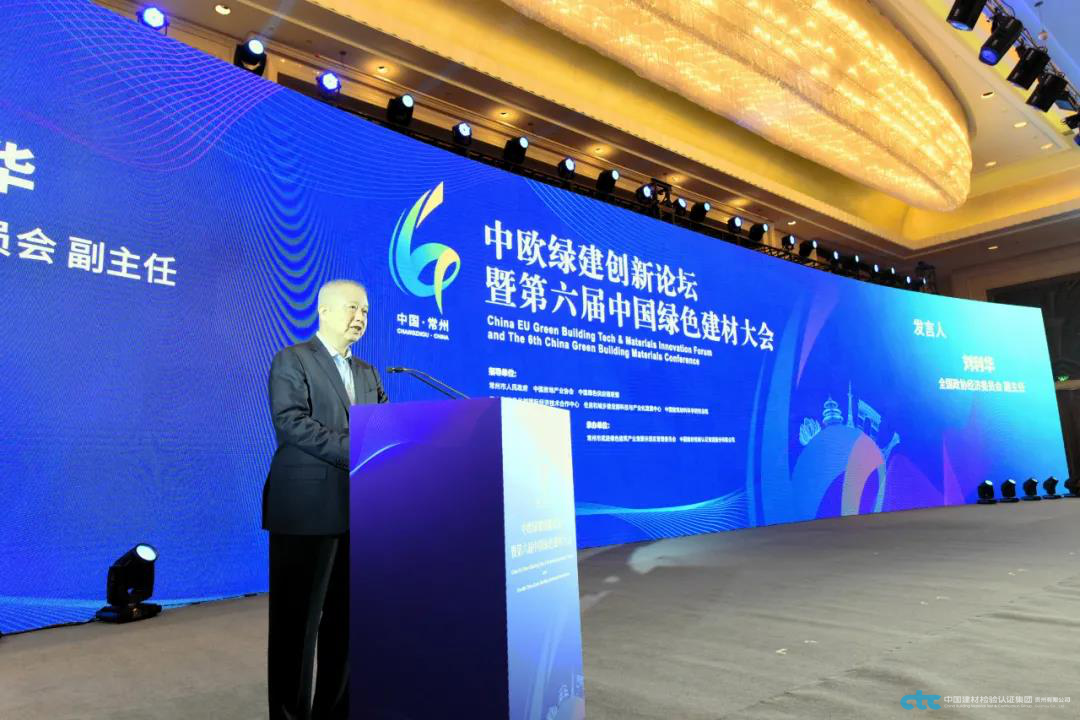 在常州市人民政府、中國房地產(chǎn)業(yè)協(xié)會(huì)、中國綠色供應(yīng)鏈聯(lián)盟、工業(yè)和信息化部國際經(jīng)濟(jì)技術(shù)合作中心、住房和城鄉(xiāng)建設(shè)部科技與產(chǎn)業(yè)化發(fā)展中心、中國建筑材料科學(xué)研究總院的指導(dǎo)下,由常州市武進(jìn)區(qū)人民政府主辦,常州市武進(jìn)綠色建筑產(chǎn)業(yè)集聚示范區(qū)、中國建材檢驗(yàn)認(rèn)證集團(tuán)股份有限公司(國檢集團(tuán))承辦的“中歐綠建創(chuàng)新論壇暨第六屆中國綠色建材大會(huì)”10月14日-15日在武進(jìn)舉行?;顒?dòng)以“綠色低碳發(fā)展、創(chuàng)新合作共贏”為主題,參加活動(dòng)的領(lǐng)導(dǎo)有:全國政協(xié)經(jīng)濟(jì)委員會(huì)副主任劉利華,江蘇省政協(xié)副主席、黨組副書記閻立,中國綠色供應(yīng)鏈聯(lián)盟理事長、工業(yè)和信息化部原黨組成員金書波,十一屆全國政協(xié)常委、人口資源環(huán)境委員會(huì)副主任、建設(shè)部原副部長、黨組副書記劉志峰,中國房地產(chǎn)業(yè)協(xié)會(huì)副會(huì)長兼秘書長、住房和城鄉(xiāng)建設(shè)部原總工程師陳宜明,中國工程院院士、東南大學(xué)學(xué)術(shù)委員會(huì)主任、江蘇省建筑科學(xué)研究院有限公司董事長繆昌文,工業(yè)和信息化部國際經(jīng)濟(jì)技術(shù)合作中心主任鄭紅,工業(yè)和信息化部國際經(jīng)濟(jì)技術(shù)合作中心副主任李毅鍇,住房和城鄉(xiāng)建設(shè)部科技與產(chǎn)業(yè)化發(fā)展中心副主任梁俊強(qiáng),江蘇省政府外事辦公室副主任楊菁,常州市政協(xié)主席白云萍,常州市副市長、武進(jìn)區(qū)委書記李林,武進(jìn)區(qū)政協(xié)主席石偉東,武進(jìn)區(qū)委常委、副區(qū)長劉志峰。參加活動(dòng)的外賓有:歐盟駐華使團(tuán)氣候行動(dòng)與能源參贊Octavian Stamate,丹麥駐華使館行業(yè)參贊Christina Anderskov,奧地利駐華使館技術(shù)參贊Max Pfeiler。參加活動(dòng)的還有中國建材集團(tuán)科技管理部總經(jīng)理郅曉,同濟(jì)大學(xué)中德工程學(xué)院院長馮曉,中國建材檢驗(yàn)認(rèn)證集團(tuán)股份有限公司總經(jīng)理朱連濱,常州工程職業(yè)技術(shù)學(xué)院副院長潘玉琴以及來自國家相關(guān)職能部門、行業(yè)協(xié)會(huì)、企業(yè)界代表和常州市、武進(jìn)區(qū)相關(guān)職能部門400余人相聚武進(jìn),共同探討綠色低碳發(fā)展,謀求創(chuàng)新合作共贏.