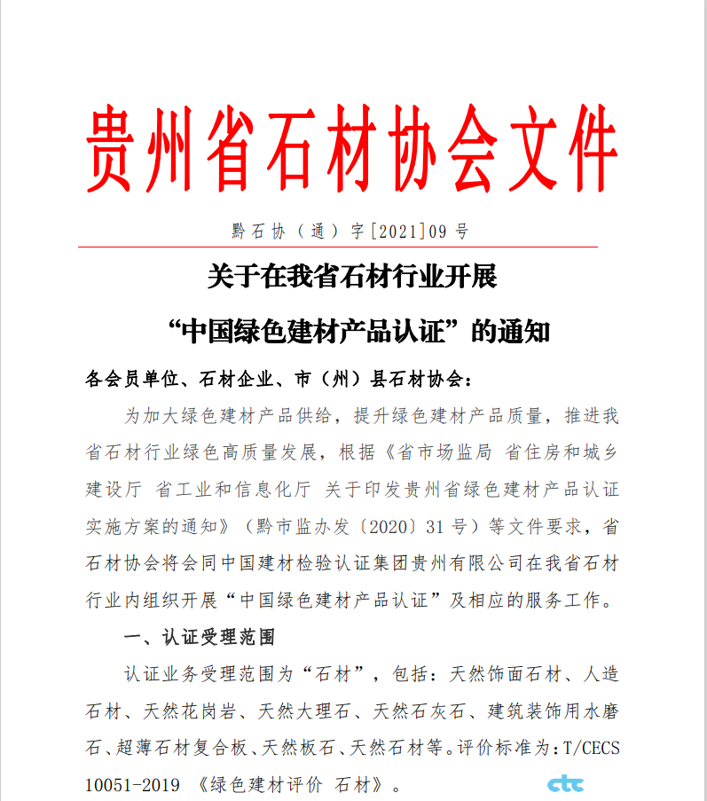 我公司與貴州省石材協(xié)會聯(lián)合開展綠色建材產(chǎn)品認證相關工作