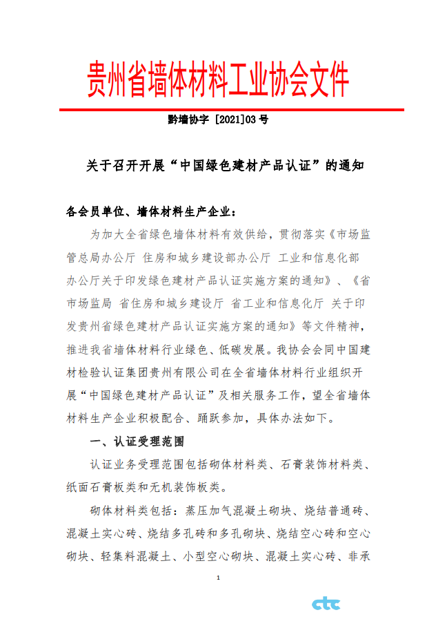 我公司與貴州省墻體材料工業(yè)協(xié)會開展“中國綠色建材產(chǎn)品認證”相關(guān)工作