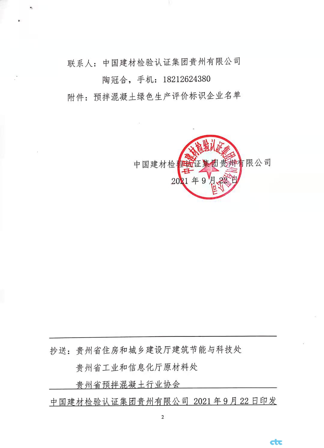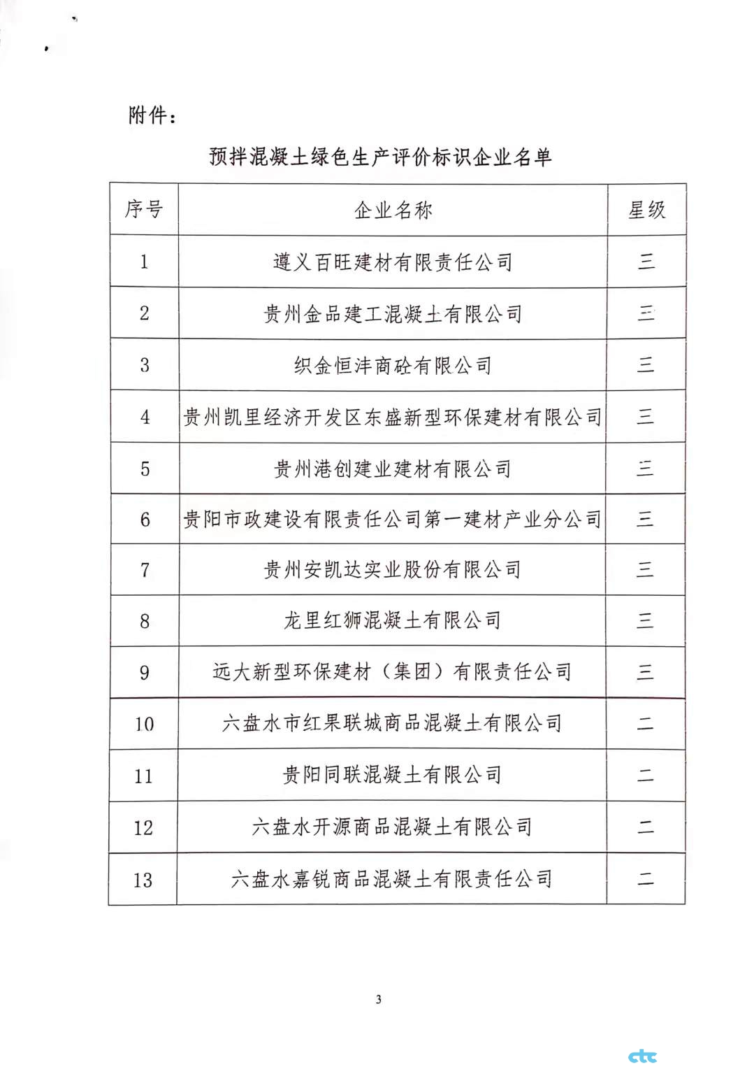 2021年貴州省第五批通過預拌混凝土綠色生產標識評價企業(yè)公示