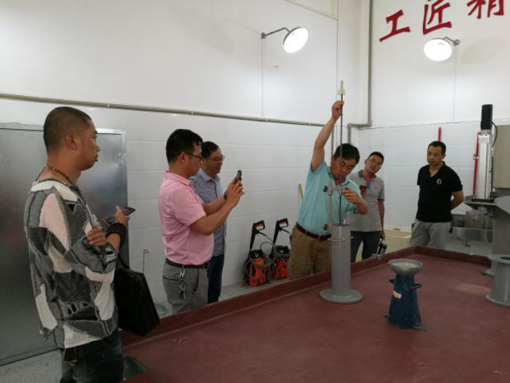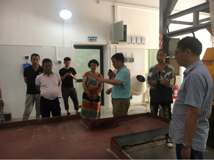 2017年8月8日,六盤水市混凝土協(xié)會秘書長林勇與會員企業(yè)負責(zé)人、貴陽市預(yù)拌混凝土協(xié)會秘書長劉光先一同到貴州公司參觀交流。貴州公司技術(shù)總顧問帥頌憲帶領(lǐng)大家參觀了高性能混凝土實驗室以及配套設(shè)施,并做現(xiàn)場講解。